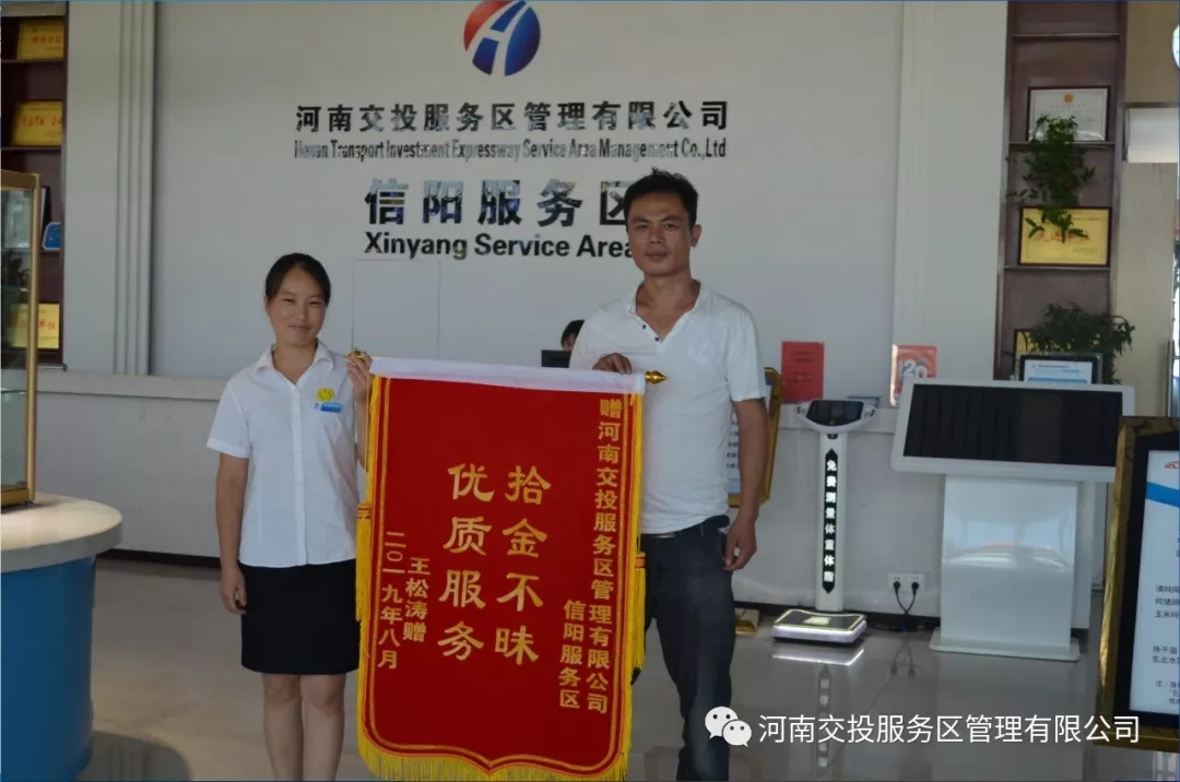 8月28日,信陽服務(wù)超市領(lǐng)班雷小菊在清理柜臺時,發(fā)現(xiàn)柜臺上有一部白色手機,在尋找失主未果后,雷小菊主動聯(lián)系值班經(jīng)理并將失物上交辦公室。隨后,辦公室工作人員接到失主王先生來電。經(jīng)了解,王先生駕車途經(jīng)信陽服務(wù)區(qū)在超市購物時,不慎將手機遺落,電話里他激動說道:“手機里面有很多重要信息,丟失真的非常麻煩,沒有想到還能找回來,真是太感謝了!”經(jīng)過溝通,服務(wù)區(qū)工作人員將手機郵寄給王先生。王先生對服務(wù)區(qū)工作人員拾金不昧、樂于助人的事跡非常感激。30日上午,失主王先生送來了一面錦旗,感謝信陽服務(wù)區(qū)工作人員拾金不昧的行為。